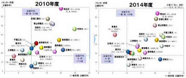 ■首都圏の主な競合大学の志願状況(2010年度→2014年度)![]() |