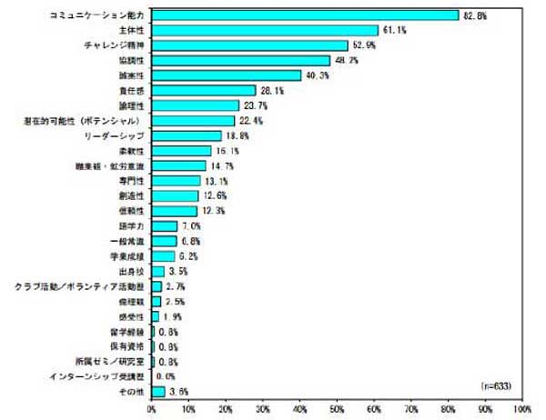 ■経団連加盟企業が新卒社員選考にあたって特に重視した点(5つ選択)![]() |