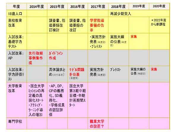 ■某大学の2020年度までの高大接続改革スケジュール(計画・想定を含む)![]() |