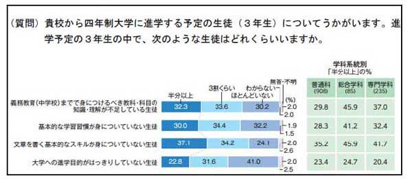 ■某高等学校の進路指導担当教員への高校生の学習観・進学観アンケート結果![]() |