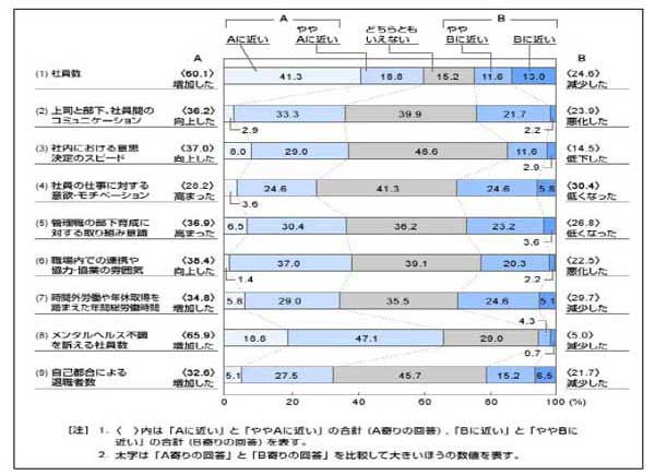 ■某企業の正社員が感じる過去5年間における職場や仕事の変化アンケート結果![]() |