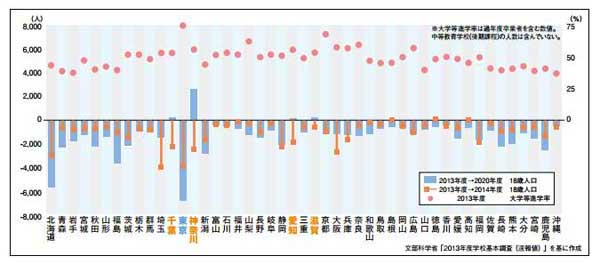 ■都道府県別18歳人口の推移と大学進学率推移![]() |